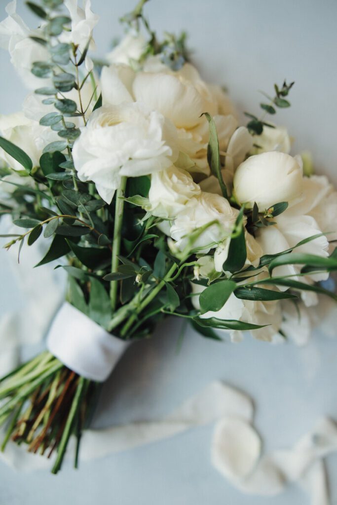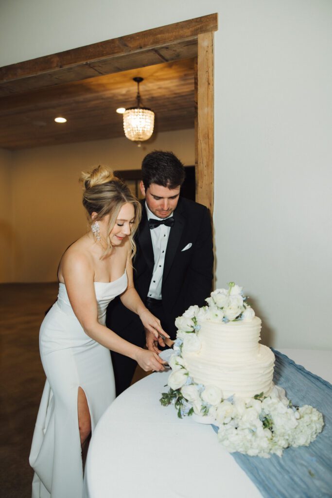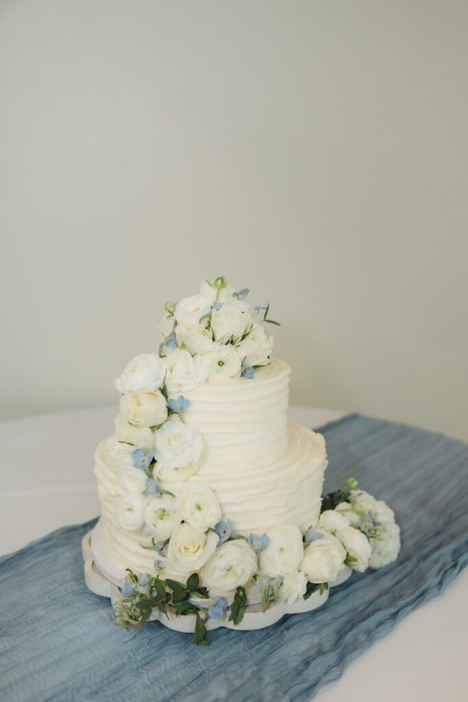Inside the reception, Hannah’s personal touch shined through with elegant blue china plates selected specifically for the tables. The palette of soft blues and whites continued throughout the decor, bringing a cohesive, timeless look to the celebration.