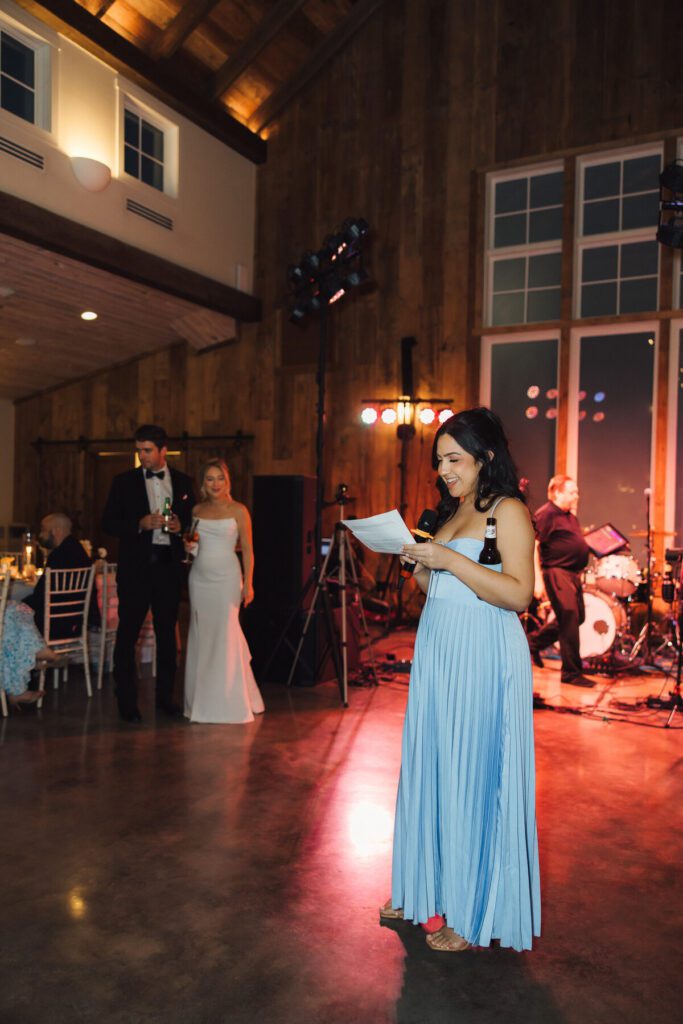 The real beauty of this wedding wasn’t just in the colors or the details—though those were lovely. It was in the way the day felt. There was no rush. No pressure to pose or perform. Just joy, connection, and intentional time with the people who mattered most. The couple prioritized experience over everything else. Because the venue offered full weekend lodging, the celebration didn’t stop when the reception ended. Friends and family stayed late into the night, talking, laughing, and soaking in every moment.